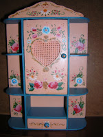 También pude volver a los muebles, mi especialidad favorita, con el propósito de mejorar la calidad de los productos. Me he propuesto combinar el uso de materiales como fibrofácil, con el arte bauernmalerei en pequeño. Así fue como, inspirada en imágenes de Internet, diseñé mis propios modelos y acabo de finalizar estas realizaciones.