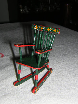 Back to painting, which is what got me started in this hobby. When my friend Graciela (Proppy) asked me to do bauernmalerei on a minitable of hers I had to start seeing small. She insisted to the point of sending me a couple of round tables - one for her and one for me- so that I would decorate them. The above tray later inspired more minibauernmalerei.