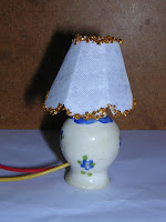 Con la ayuda del tutorial de Pat Carlson (http://www.cdhm.org/tutorials/making-miniature-lampshade.html) realicé algunas pantallas y pude terminar de armar una lámpara. Esta funciona gracias a la clase que Olga nos dio, en la cual nos enseñó a soldar los cables en la bombita. Y la base es un regalo de Lily, realizado en porcelana china para lámpara